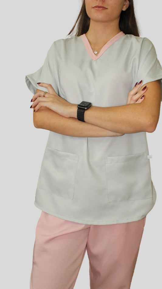 Scrub Feminino- Conjunto privativo basic- Rosa e Cinza