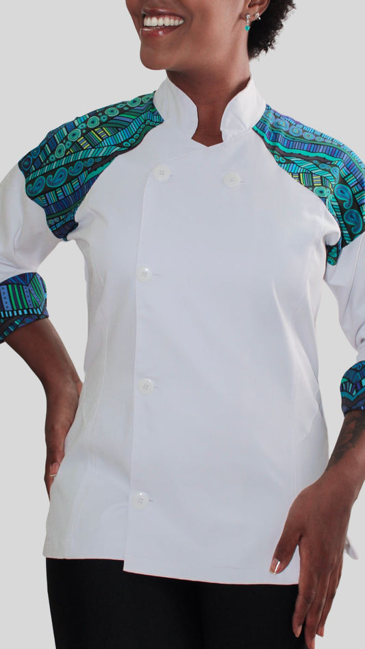 Dolmã Unissex Branca- Manjericão- Botão de pressão