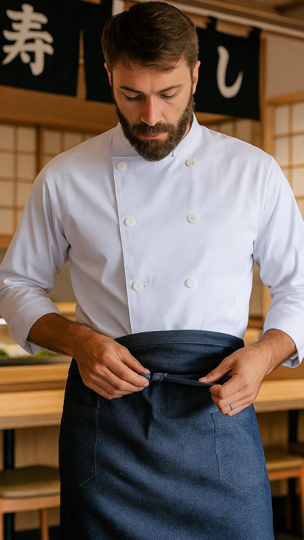 Dolmã unissex, de botão. Tecido 100% algodão - sarja leve. Mangá 3/4. Na cor branca.